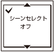- シーンボタンを押してシーン選択画面に入り、「シーンセレクト オフ」を選ぶ。