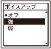 メニューで「ボイスアップ」を「強」または「弱」に設定することによって、聞き取りにくい小さな音も聞きやすい大きさに自動調節して再生することができます。