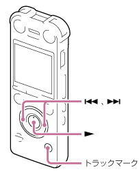 - 録音中、再生中、録音一時停止中、トラックマークを付けたい場所でトラックマークボタンを押す。