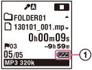 * 완전히 방전된 배터리를 실온에서 완전히 충전하는 데 소요되는 대략적인 시간입니다. 이 시간은 배터리의 잔량 및 상태에 따라 달라집니다. 배터리 온도가 낮을 때나 IC 레코더로 데이터를 전송하는 동안 배터리를 충전하면 시간이 더 많이 걸립니다.