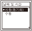 "자동(동기화)"을 선택하면 Sound Organizer 소프트웨어가 작동 중인 상태에서 IC 레코더가 연결되어 있는 컴퓨터의 시계를 사용하여 시계가 자동 조절됩니다.