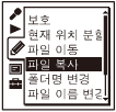 선택한 파일을 내장 메모리에서 메모리 카드의 원하는 폴더로 복사하거나 메모리 카드에서 내장 메모리의 원하는 폴더로 복사할 수 있습니다. 이 기능은 백업을 저장할 때 유용합니다. 조작을 시작하기 전에 복사용으로 사용할 메모리 카드를 메모리 카드 슬롯에 삽입하십시오.