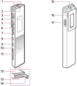 *2 Το ενσωματωμένο ηχείο χρησιμεύει απλά για την επιβεβαίωση του εγγεγραμμένου ήχου και η ένταση της αναπαραγωγής μπορεί να είναι χαμηλή ή να είναι δύσκολο να ακούσετε τον ήχο. Σε αυτήν την περίπτωση, χρησιμοποιήστε ακουστικά.