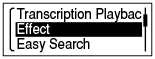 - En el modo de reproducción o parada de reproducción de un archivo de música o un archivo de podcast, seleccione OPTION - “Effect” y, a continuación, pulse