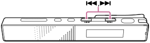 La grabadora IC realiza búsquedas a velocidad lenta con el sonido de reproducción. Esto resulta útil para comprobar la palabra siguiente o la anterior. A continuación, si mantiene pulsado el botón, la grabadora IC empieza a realizar búsquedas a una velocidad superior.