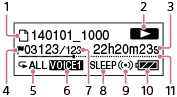 هنگاميکه يک فايل ضبط شده با استفاده از ضبط کننده آی سی پخش می شود، نام فایل و نام پوشه بدین ترتیب نمایش داده می شوند که با نمایش نام فایل دنبال می شود.
