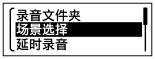 - 在录音停止模式下,选择OPTION- “场景选择”,然后按