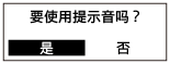 首次开启电源时,设定时钟后会显示提示音设置窗口,您可以选择开启或关闭操作提示音。