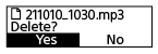 Pojavi se [Delete?] i navedena datoteka reproducira se za potvrdu.