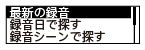 録音したファイル:「最新の録音」、「録音日で探す」、「録音シーンで探す」または「フォルダ」