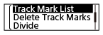 Când redarea este în așteptare sau în curs, selectați [Track Mark List] din meniul OPTION, apoi apăsați pe
