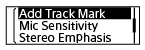 Dok je snimanje u toku ili dok je reprodukcija u toku ili u stanju pripravnosti, izaberite [Add Track Mark] u meniju OPTION kad snimanje ili reprodukcija dođu do tačke na kojoj želite da dodate oznaku zapisa, a zatim pritisnite