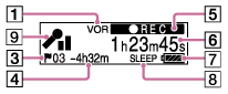 : Snimanje preko funkcije VOR je pauzirano. ([VOR] i indikator proteklog vremena trepere.) - Indikator proteklog vremena
