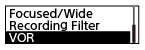 Lorsque le volume du son entrant descend en dessous du niveau prédéfini, « VOR » clignote à l'écran et l’enregistrement s’arrête. Lorsque le volume atteint de nouveau le niveau, l'enregistrement reprend.