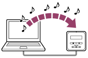 Pode copiar música e ficheiros áudio (LPCM(.wav)/MP3(.mp3)/WMA(.wma)/AAC-LC(.m4a)) de um computador para o gravador de IC ao arrastar e largar.