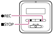 REC.”REC” visas i displayfönstret på IC-inspelare för att indikera att inspelning pågår, och driftindikatorn (