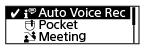 Auto Voice Rec:- Lämpligt för inspelning av mänskliga röster i allmänhet (standardinställning).