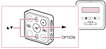 Du kan visa OPTION-menyn genom att trycka på OPTION på fjärrkontrollen. Objekten på OPTION-menyn varierar beroende på vilken funktion valts på din IC-inspelare.