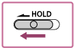 För att frigöra fjärrkontroll från HOLD läge, skjut HOLD brytaren från ”HOLD”.