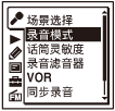 当已经在菜单中设置了“场景选择”时,您不能设置“录音模式”。设置“录音模式”前,先设置“场景选择”为“关”。