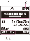 根據IC錄音機目前的操作顯示下列內容。
