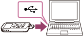 - 當您將IC錄音機連接到不在運轉中的電腦時,將不會對電池充電。即使電腦已經啟動,如果電腦處於減少操作模式(待機或睡眠),也無法對電池充電。