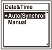 選取“Auto(Synchronizing)”時,時鐘會自動使用與IC錄音機連接的電腦(已啟用Sound Organizer軟體)時鐘進行調整。