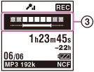 - 當顯示畫面上出現“Accessing...”動畫時,代表IC錄音機正在錄製資料並儲存到記憶體媒體中。當IC錄音機正在存取資料時,請不要取出電池;連接或取下USB交流電轉換器(非附件)。否則,可能會損壞資料。