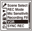 - VOR功能受您週遭的聲音影響。請根據錄音狀況在選單中設定“Mic Sensitivity”。如果更改“Mic Sensitivity”設定後錄音仍不能令人滿意,或是在重要的錄音場合中,請將選單中的“VOR”設為“OFF”。