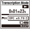 - 經過為睡眠計時器設定的期間後,即使啟用轉錄播放模式,IC錄音機仍會自動關閉。