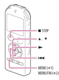- 按MENU(僅限ICD-UX532/UX533)或MENU/FM(僅限ICD-UX533F/UX534F),即可輸入選單模式。