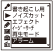 ボタンを押して決定します。アラームが解除されます。表示窓のアラーム表示が消えます。 - アラーム再生を止めるには、アラーム再生中に音量-/+以外のボタンを押します。ホールド中は、どのボタンを押しても止められます。