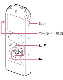 - 停止中または再生中に消去したいファイルを選ぶ。