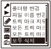 파일을 삭제하기 전에 FOLDER 표시를 눌러서 폴더 창으로 돌아가 모든 파일을 삭제할 폴더를 선택한 다음에 메뉴 창으로 진행하십시오.