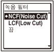 을 눌러 "NCF(Noise Cut)" 또는 "LCF(Low Cut)"를 선택한 다음