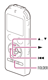 A área de gravação e a área só de reprodução das pastas guardadas no gravador de IC são geridas separadamente e são apresentadas com separadores.