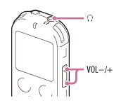 (auscultadores). - Prima VOL –/+ para ajustar o volume de controlo.