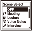 - Depois de programar os itens do menu de gravação, selecione “Scene Select” no menu, prima