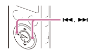 O gravador de IC efetua a procura a uma velocidade baixa com o som de reprodução. É útil para verificar uma palavra para a frente ou para trás. Depois, se mantiver o botão premido, o gravador de IC começa a procurar a uma velocidade mais alta.