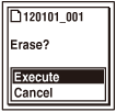 - Selecione o ficheiro que pretende apagar quando o gravador de IC estiver no modo de paragem ou reprodução.
