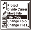 Aparece a animação “Copying...” e o ficheiro é copiado como o último ficheiro na pasta de destino. É copiado um ficheiro com um nome de ficheiro idêntico. - Prima