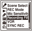 - Não pode programar o filtro de gravação quando a opção “Scene Select” estiver programada no menu. Programe “Scene Select” para “OFF” antes de programar “Recording Filter”.