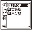 (Podcast):再生専用エリア。パソコンから転送したポッドキャストを管理します。(フォルダ、ファイルが無い場合は、表示されません。)