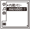 を押して、「内蔵メモリー」または「microSDカード」を選び、