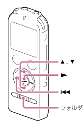 本機で保存するフォルダは、録音可能エリアと再生専用エリアに分けて管理され、タブで表示されます。