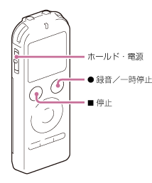 ここでは、基本的な録音操作の手順について説明します。設定したマイク感度と録音モードで録音を行います。