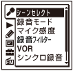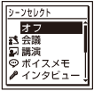 さまざまな録音シーンに合わせて、録音モードやマイク感度などの録音に必要な項目を、一括でおすすめの設定に切り換えることができます(シーンセレクト機能)。