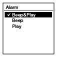 يمكن اصدار صوت منبه وبدء الاستماع للملف المختار في الوقت المرغوب. يمكن الاستماع لملف في تاريخ محدد أو مرة كل أسبوع أو في نفس الوقت من كل يوم. يمكن ضبط منبه للملف.