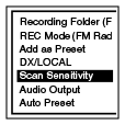 - في وضع استقبال بث راديو FM، اختر OPTION - "Scan Sensitivity"، ومن ثم اضغط