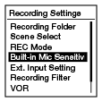 Settings" - "Recording Settings" - "Built-in Mic Sensitivity"، ومن ثم اضغط